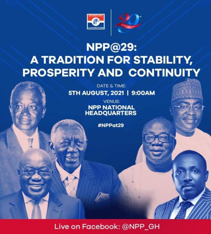 He said the poster titled NPP at 29: ‘A Tradition for Stability, Prosperity, and Continuity ‘ announcing the organization of a press conference at the party’s headquarters in Accra to mark the day, obliterated the image of the late Vice President, Aliu Mahama from the activities to mark the celebrations.