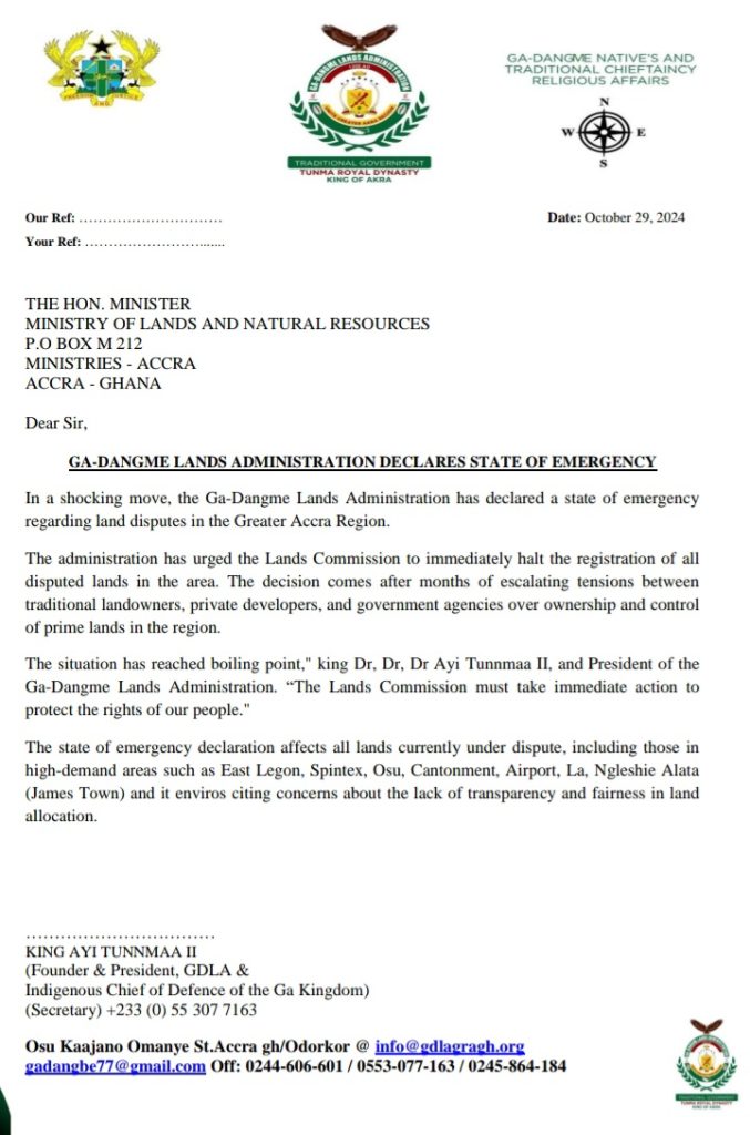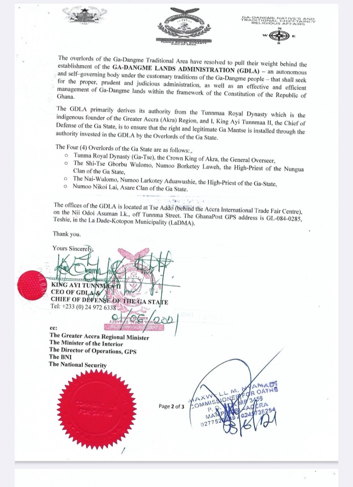 Accra, September 9, 2025 — In a striking revelation that cuts through the ongoing disputes surrounding the traditional leadership in the Greater Accra Region, Dr. King Ayi Tunnma, Founder and President of the Ga Dangme Lands Administration (GDLA), has publicly declared that “there is currently no legitimate Ga Mantse reigning in Greater Accra”.