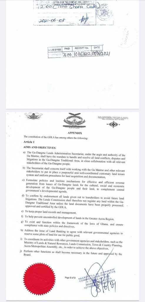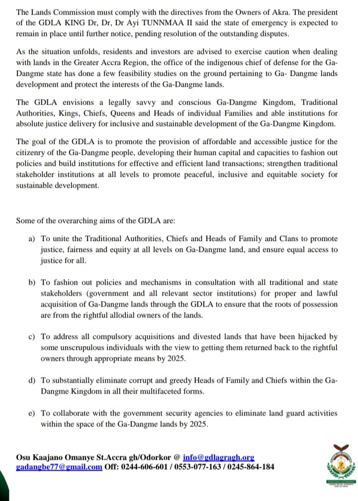 His organization, the GDLA, was established to resolve land and chieftaincy disputes within the traditional areas of the Ga and Dangme people.