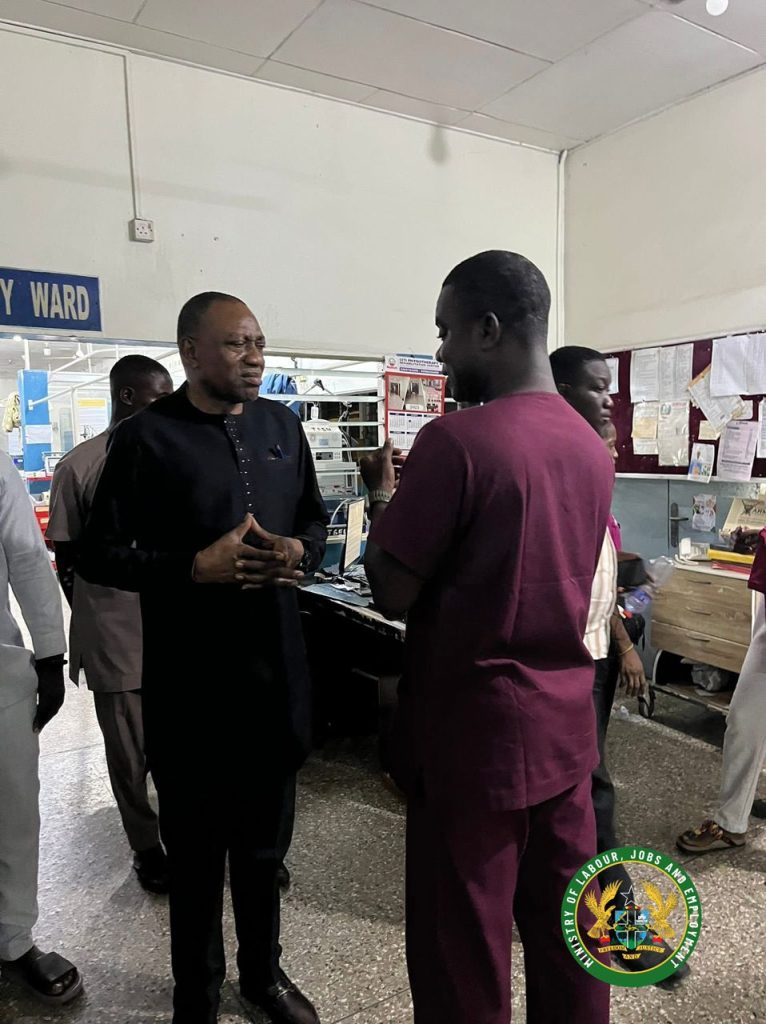 The Minister for Labour, Jobs and Employment, Dr. Rashid Pelpuo, on Wednesday evening visited the 37 Military Hospital to sympathize with victims of the tragic incident that occurred during the Ghana Armed Forces recruitment exercise.