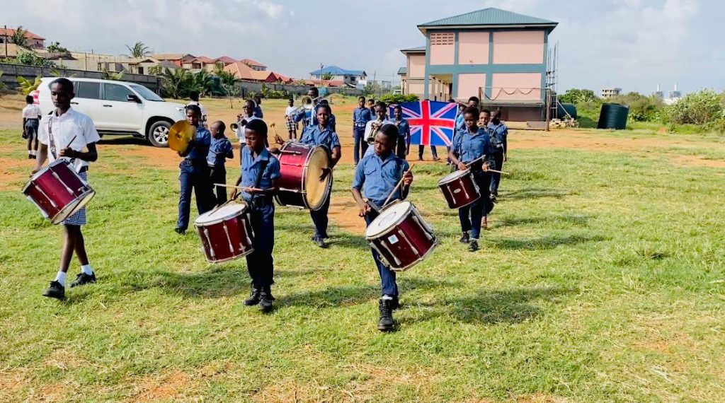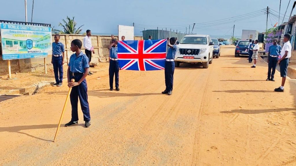 This visit later took place, with Pamela Bassah and Prosper Afun representing theBritish High Commission. They were welcomed by the St. Nicholas Navy Cadet Corps and entertained by the pupils. The UK based charity hopes to have a closer relationship with the British High Commission and the British expatriate companies in Ghana. The charity works very closely with the charity TEABAG in Mankoadze as well as the Chaffinch Trust in the UK whose patron is HRH Princess Anne