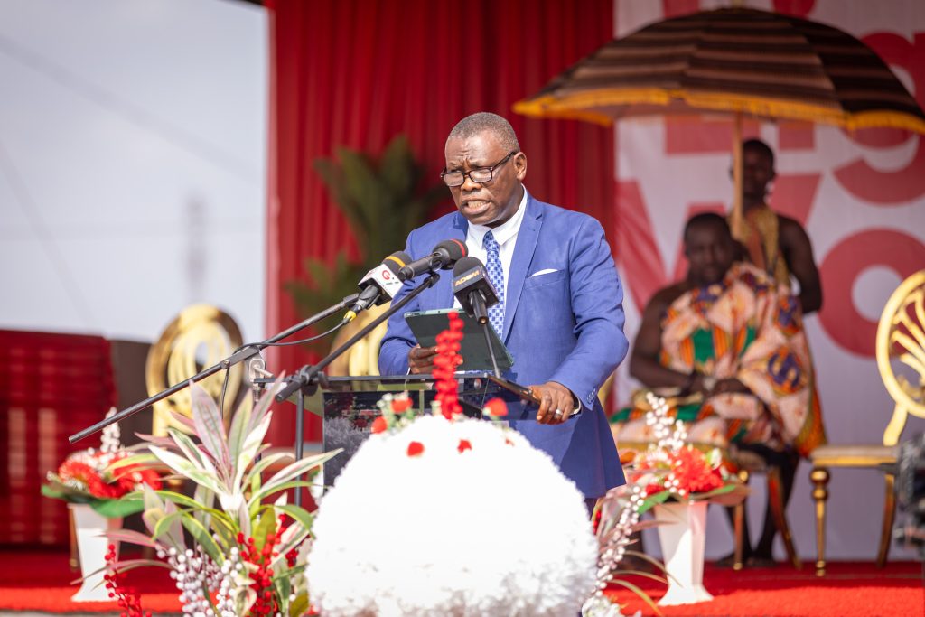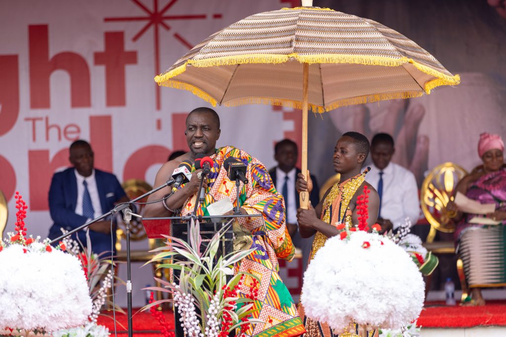 Nana Yaw Dasebre Dwamena, Amanse Abuoso Benkumhene delivering a speech at the event held at Jubilee Park, Adum, Kumasi