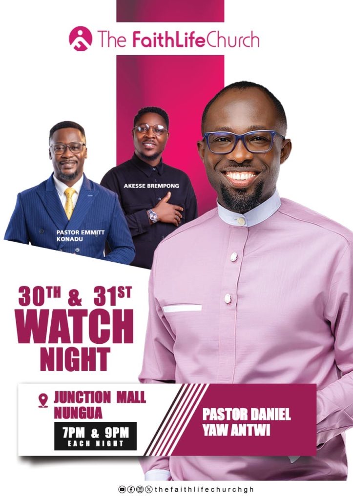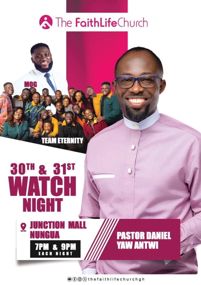 Tema, Ghana – December 2025 — The Faithlife Church is set to usher believers into the new year with 2 Star-studded & power-packed Watchnight Services scheduled for Monday 30th & Tuesday 31st December 2025 at The Junction Mall, Nungua.