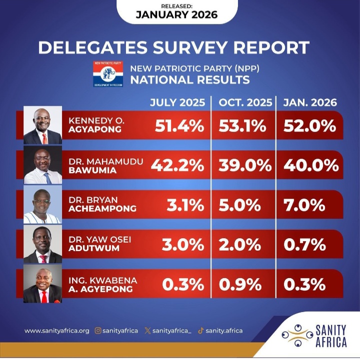 Sanity Africa’s Phase Three voter intention survey offers a critical snapshot of the evolving dynamics within the New Patriotic Party (NPP) ahead of its presidential primaries.
