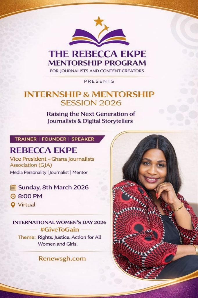 MARCH 8, 2026- Accra, Ghana – As part of activities marking International Women’s Day, respected Ghanaian journalist Rebecca Ekpe has launched the Rebecca Ekpe Mentorship Program for Journalists and Content Creators – Internship and Mentorship Season 2026, an initiative designed to nurture and empower the next generation of journalists and digital storytellers.