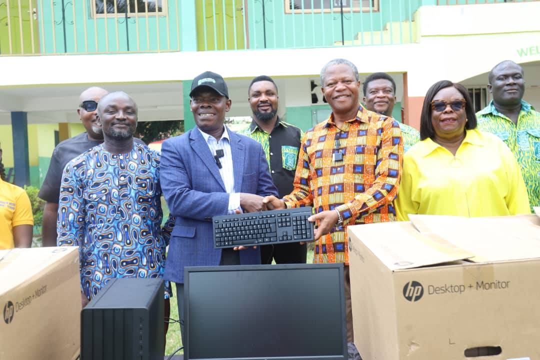 Mr. Richard Acheampong, CEO of Roker Pharmer and Chairman of the Parent Teacher Association (PTA) of Denam Royal School donated desktop computers to the school on Friday March 13. 2029 at an impressive ceremony at Gbawe in Accra.