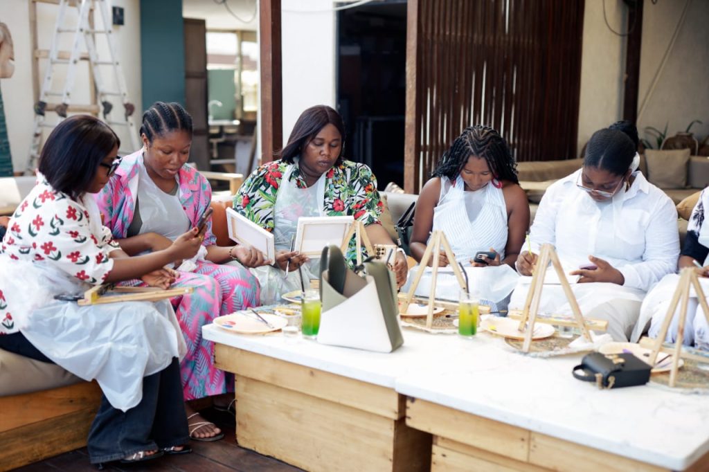 Some ACCA ladies portraying their paintings skills at the ACCA IWD event.