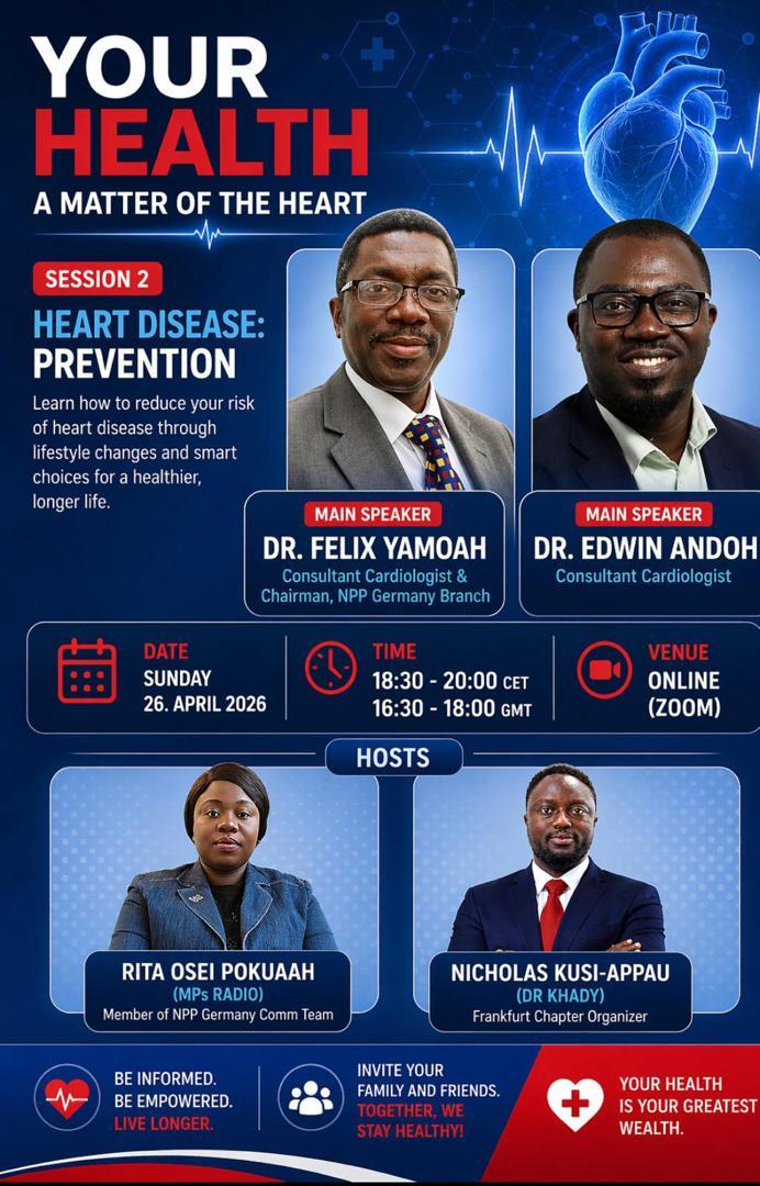 The webinar, is being organized under the leadership of Dr. Felix Yamoah, who also serves as Chairman of the NPP Germany Branch, and seeks to bridge the gap between medical expertise and public awareness, particularly among Ghanaians at home and in the diaspora.